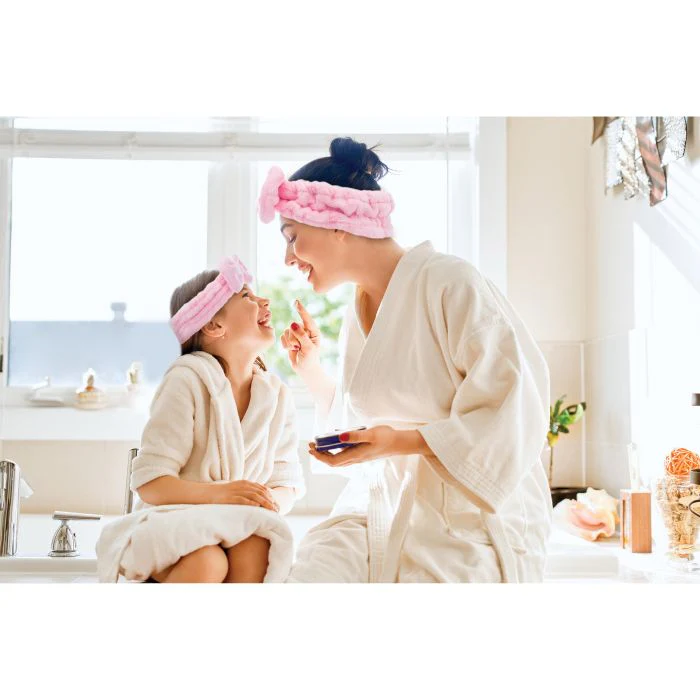 Stretch super-soft headband keeps your hair out of your face when pampering, applying skincare or make up. Have the day spa experience at home with your little one.